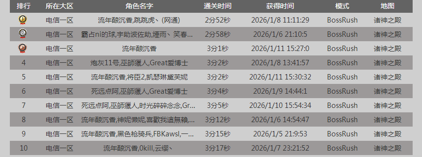 经过了整整一周的激烈竞争,本次“BossRush挑战赛(01.05~01.11)”于01月11日23:59落下帷幕,各个奖项也纷纷被强大的“挑战者”们摘走。由于参与这次挑战赛的高手如云,好成绩层出不穷。比赛也提供给大家不断突破自我和展现自我的良好平台!