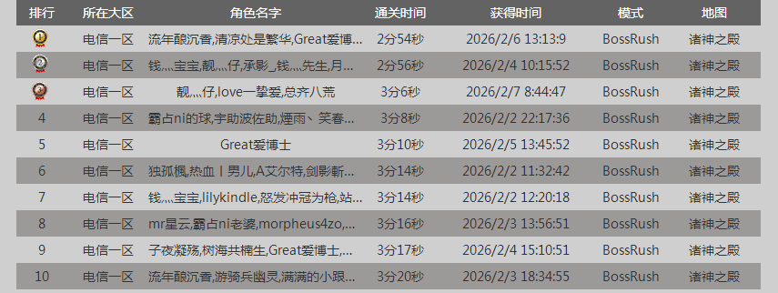 经过了整整一周的激烈竞争,本次“BossRush挑战赛(02.02~02.08)”于02月08日23:59落下帷幕,各个奖项也纷纷被强大的“挑战者”们摘走。由于参与这次挑战赛的高手如云,好成绩层出不穷。比赛也提供给大家不断突破自我和展现自我的良好平台!